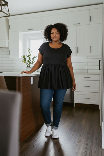 Our ladies peplum top is a Mimi & Mouse fav! It has beautiful scoop neckline, a comfy and stylish gathered waistline and short sleeves. It is made from our incredibly soft bamboo knit jersey.